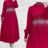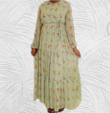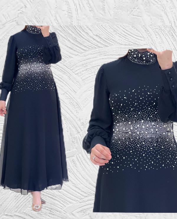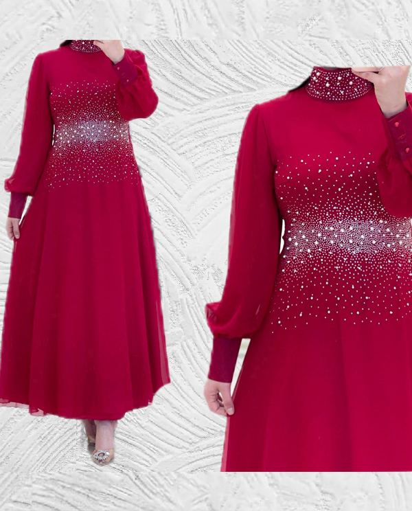 Made from predominantly soft comfortable chiffon fabrics. High neckline with slim long sleeves and flare flow floor length