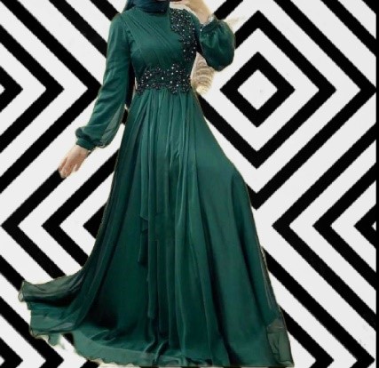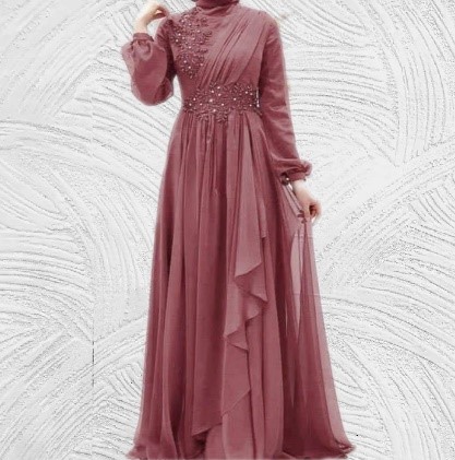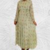 Elegant chiffon flowered gypsy dress with slim long sleeves and high neckline