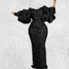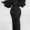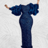 This dress is designed with sequence print on soft-touch velvet fabric, The slim waist and long puffy sleeves help shape a beautiful figure and add a feminine touch. Giving a sharp and classy look.